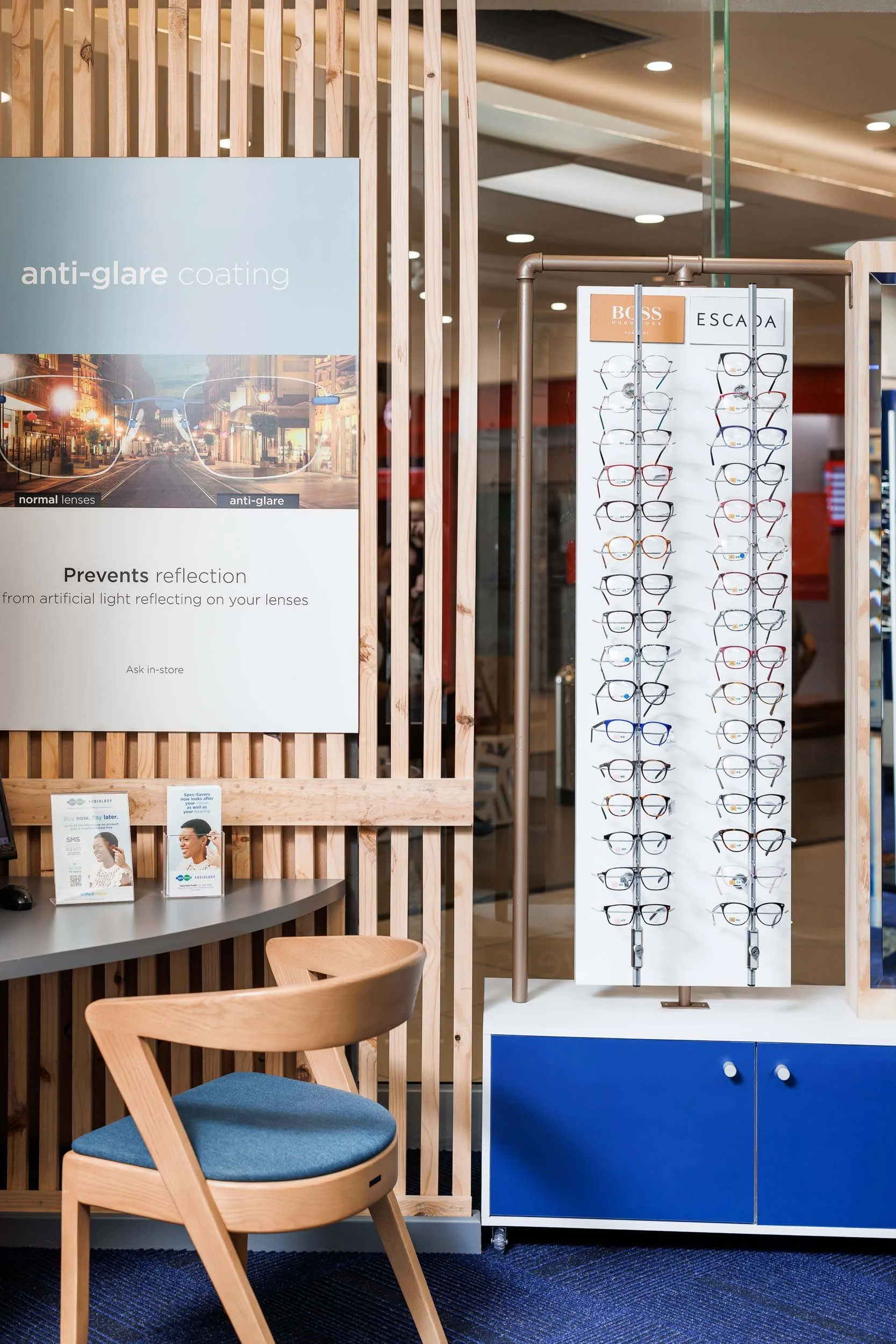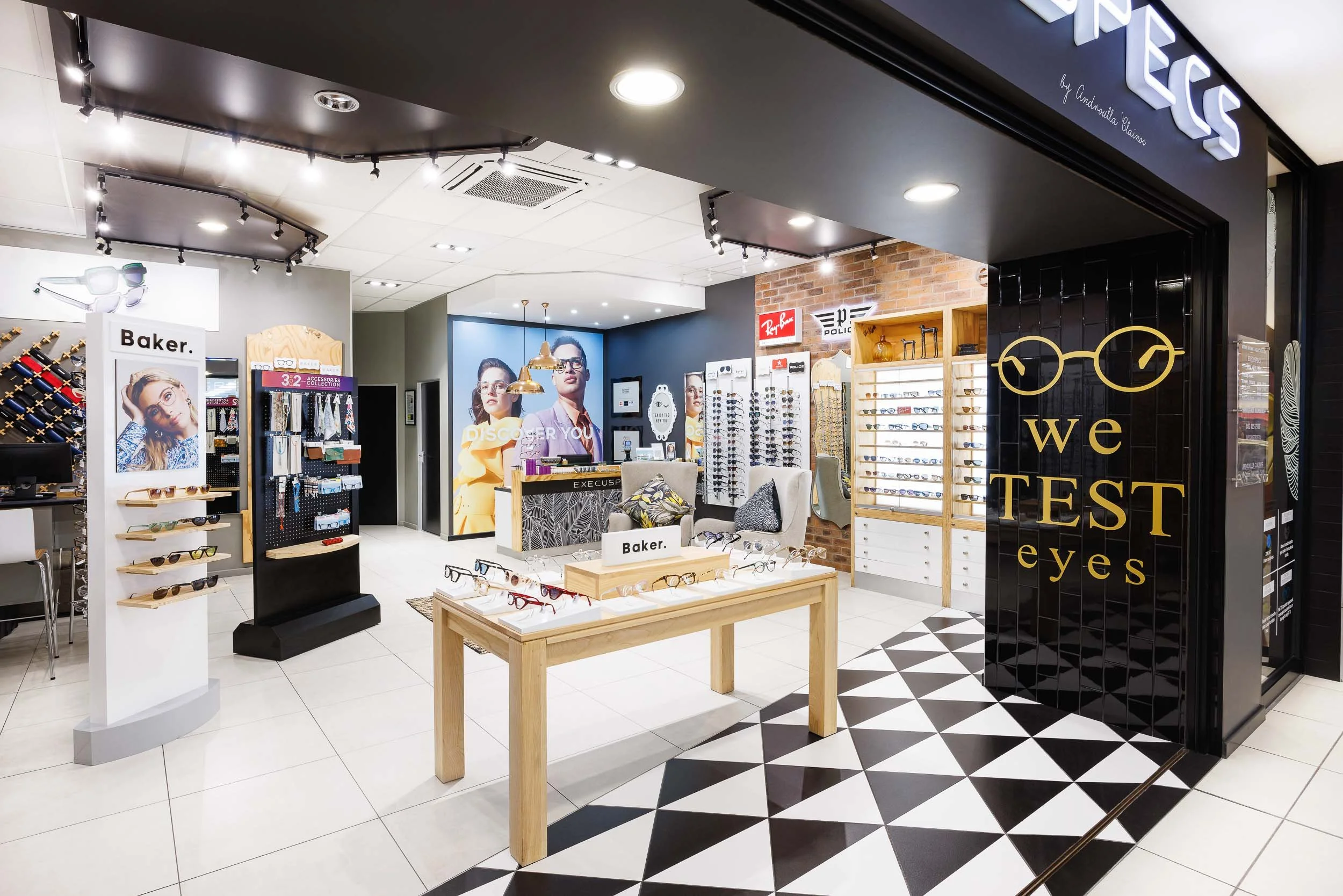 An optical shop with a wide selection of fashionable eyewear on display from well known brand Execuspecs.