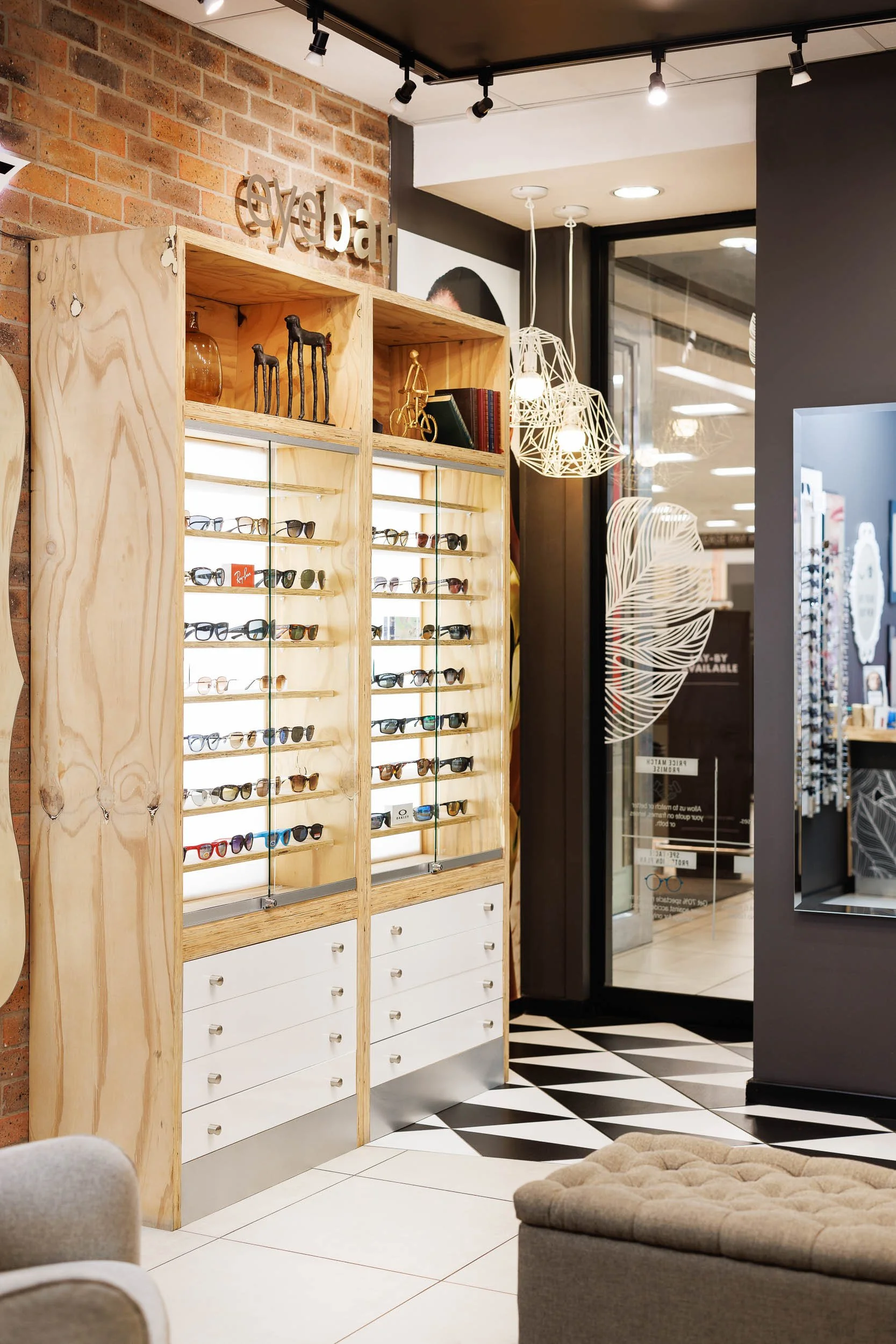 An optical shop with a wide selection of fashionable eyewear on display from well known brand Execuspecs. View fullsize