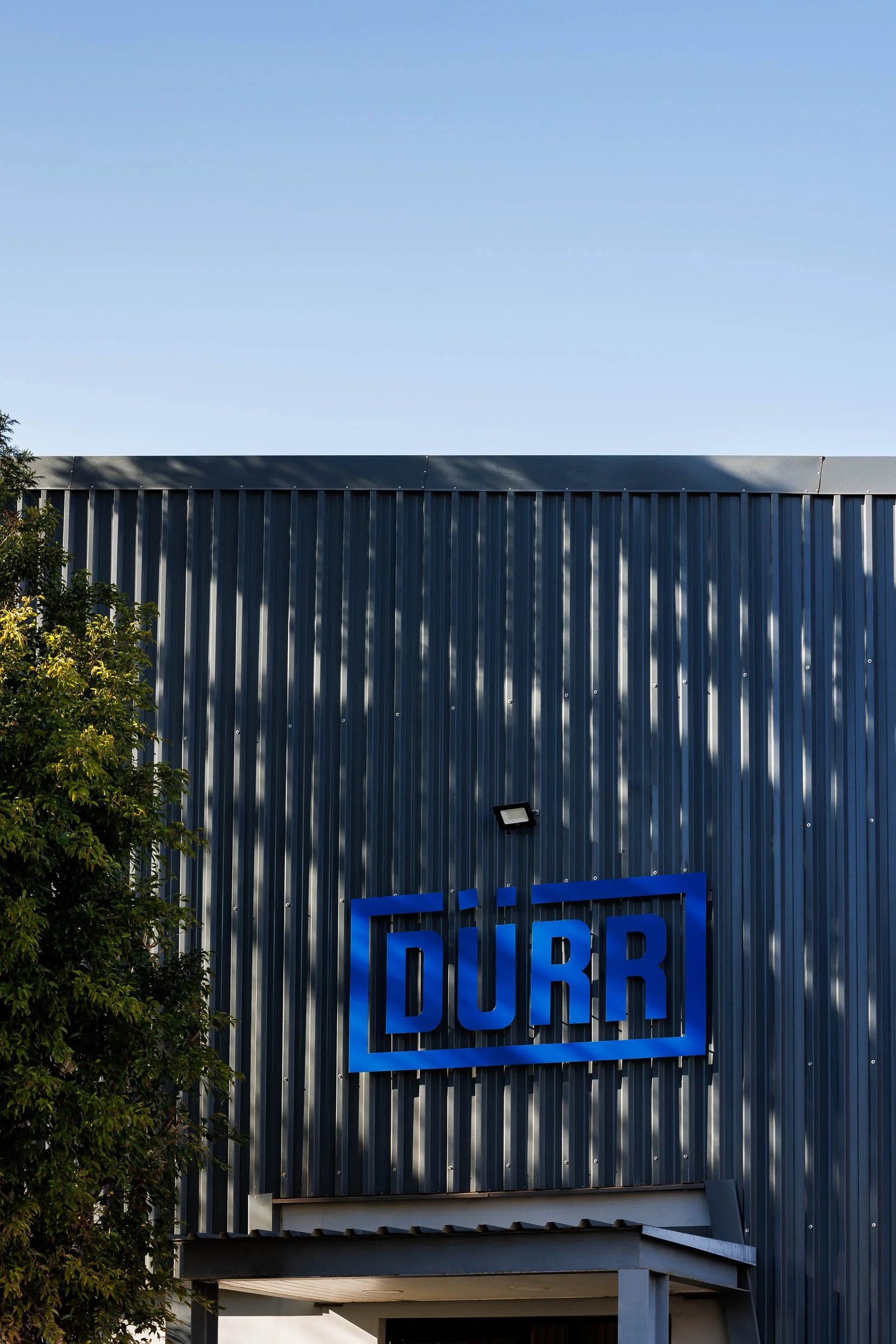 Commercial factory space for automative industry with yellow curtains separating areas for spray painting. View fullsize